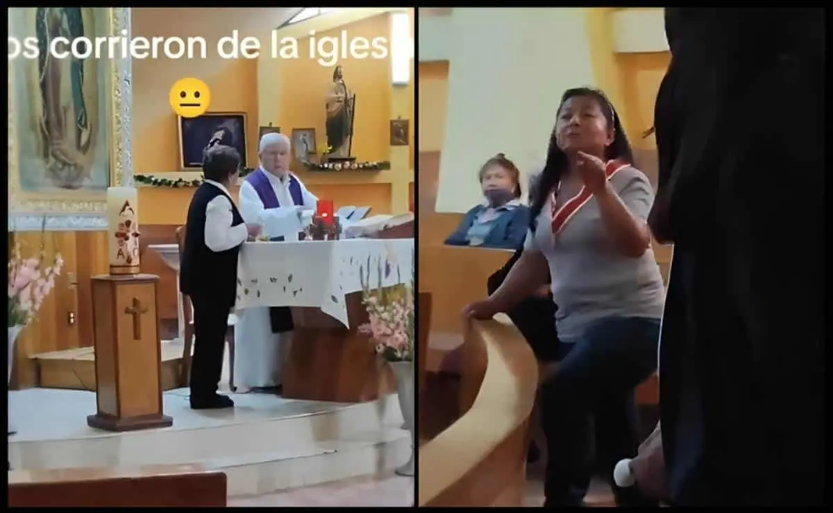 Las cosas solo consiguieron subir de tono, pues una mujer que estaba sentada cerca se metió a la discusión y le alego a la mamá de niño que respetara al párroco, pues es el representante de Dios.