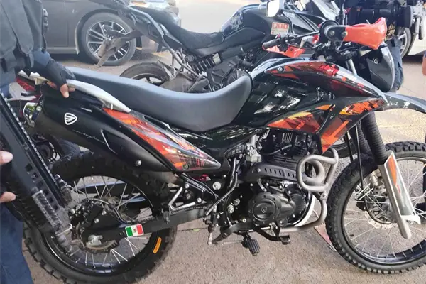 La motocicleta que se revisó es una Italika tipo Cross 250, de color naranja con negro.