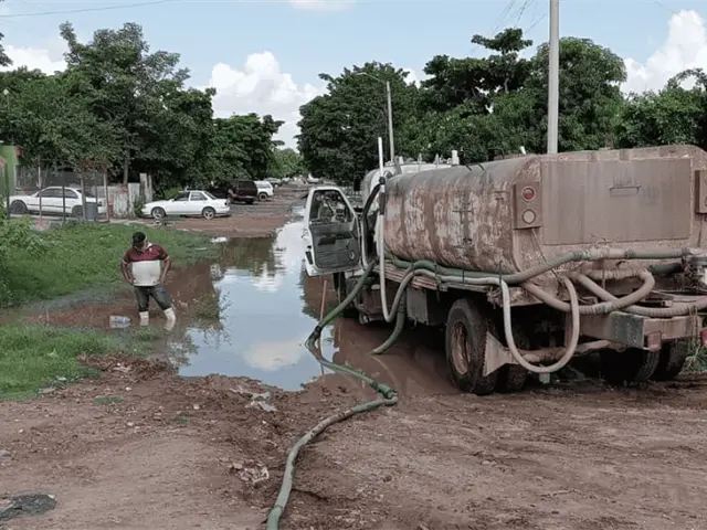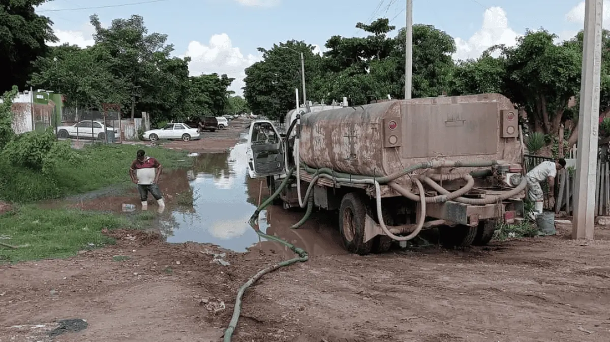 Desaguan calles en colonias de Los Mochis que se encharcaron tras recientes lluvias
