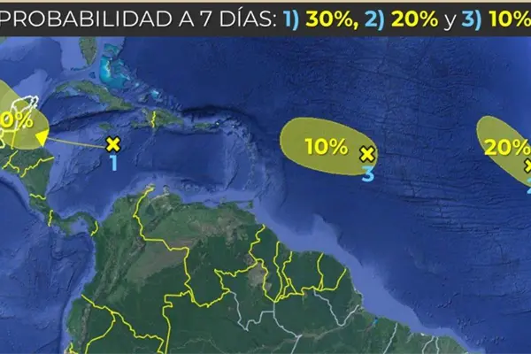 El Sistema Meteorológico Nacional adelantó que todas las zonas se encuentran en el Océano Atlántico y que hay una en particular que se encuentra cerca de nuestro país. Las zonas de baja presión con posible formación de ciclón son las siguientes: