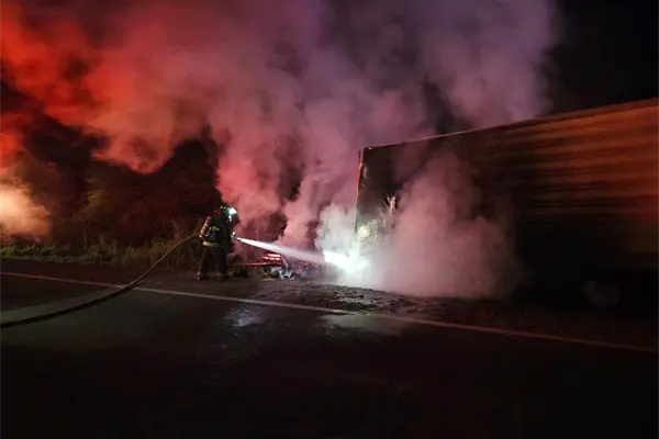 El hecho que aparentemente ocurrió por un desperfecto en la parte del motor, generó que rápidamente las llamas se propagaran por el tráiler y parte de la caja.