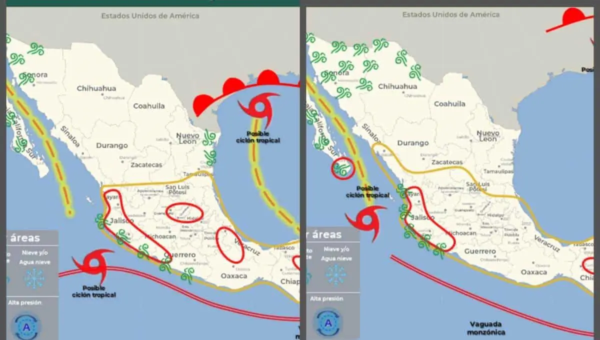 El Servicio Meteorológico Nacional (SMN) pronostica la formación de un evento ciclónico en el Océano Pacífico que amenaza a territorio nacional, como la península de Baja California y posiblemente a Sinaloa y Sonora.