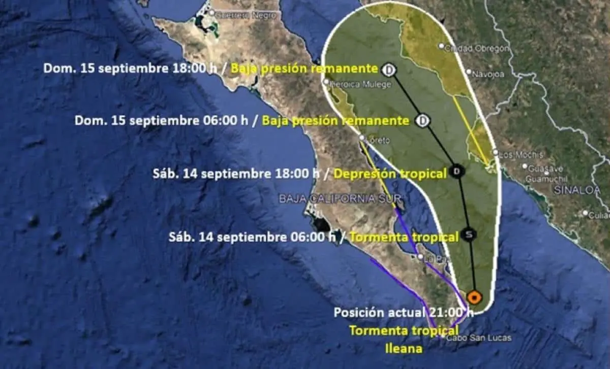 La tormenta tropical Ileana sigue ganando intensidad en su trayectoria hacia las costas de Sinaloa, luego de evitar tocar tierra en Baja California Sur y de modificar su trayectoria.