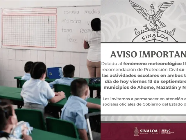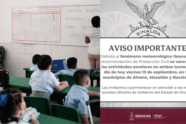 Debido a la tormenta Ileana, se suspendieron clases de todos los niveles en Ahome, Mazatlán y Navolato este viernes 13 de septiembre.