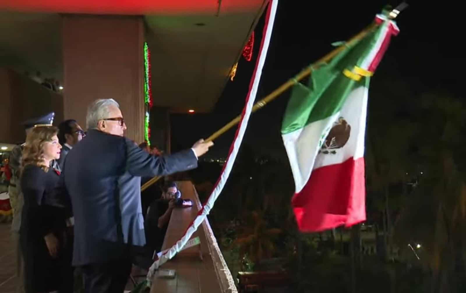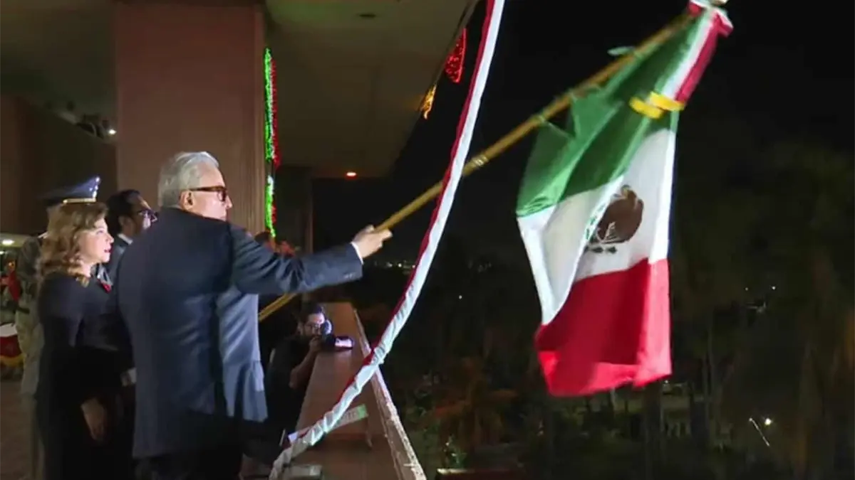Rubén Rocha Moya tomó la bandera tricolor y se dirigió al balcón del Palacio de Gobierno para dar el tradicional Grito de Independencia, celebrando los 214 años de la independencia de México.