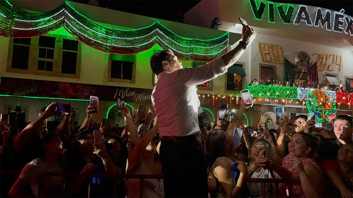 Luego de que el alcalde Édgar González llevara a cabo el acto protocolario en el 214 aniversario del inicio de la Independencia de México, el cantante subió al escenario en medio de un público que se encontraba ya extasiado, para regalarles un show inolvidable.