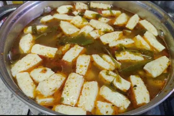 Cuando la papa esté suave, añade los cubos de queso. Cocínalos a fuego bajo hasta que se ablanden, pero sin que se derritan completamente. Una vez que el queso esté suave y el caldo tenga la sazón deseada, retira la olla del fuego, tapa y deja reposar unos minutos para que los sabores se mezclen.