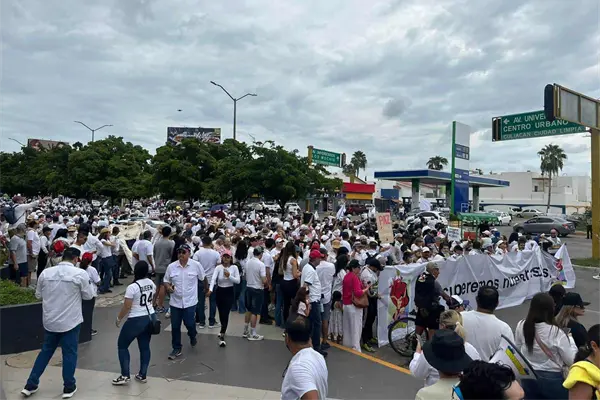 Vestidos de blanco y con pancartas exigiendo que regrese la tranquilidad a las calles, tomaron el sector Tres Ríos, cerca de donde se registró un enfrentamiento entre civiles armados y el ejército y en un solo grito decían: ‘Culichi que se respeta quiere la Paz completa’