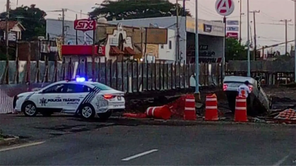 Conductor vuelca su vehículo dentro de construcción de puente en Mazatlán