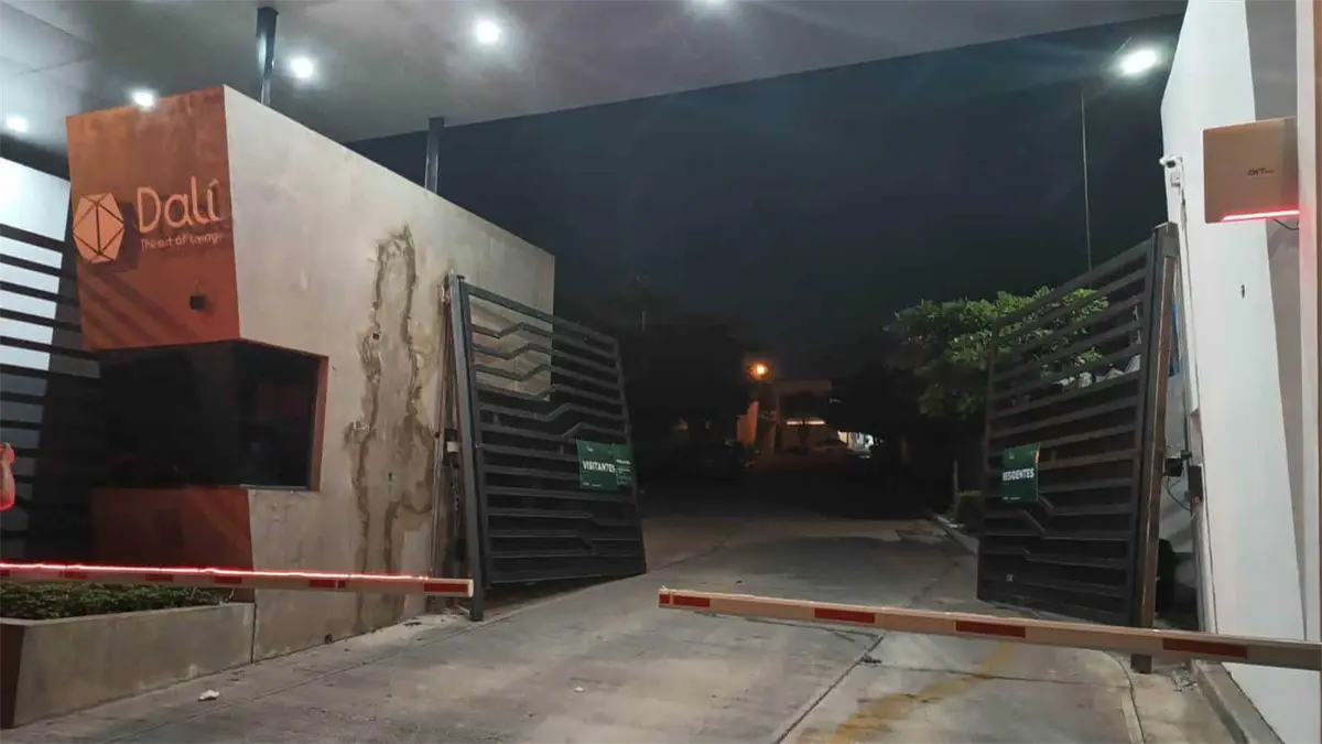 La víctima quien iba acompañada de su hijo, aceleró la marcha de la unidad y derribó el portón para ingresar a la privada y ponerse a salvo.
