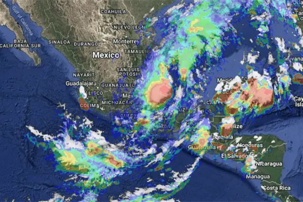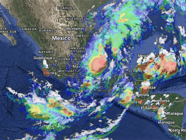 Para mañana, una zona de baja presión con probabilidad de desarrollo ciclónico permanecerá en el Golfo de México, mientras que otra zona de baja presión se formará al sur de las costas de Guerrero y Michoacán, ambos sistemas en interacción con la vaguada monzónica y con canales de baja presión sobre el occidente del territorio nacional y otro en la Península de Yucatán, en combinación con el ingreso de humedad de ambos litorales, producirán lluvias puntuales intensas en Tamaulipas, Veracruz, Puebla, Guerrero, Oaxaca y Chiapas; así como chubascos, lluvias fuertes a muy fuertes en el noreste, occidente y centro del país, incluido el Valle de México y la península de Yucatán.
