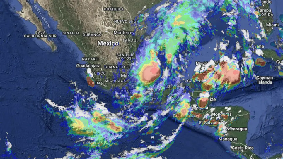 Durante esta noche y madrugada del sábado, una zona de baja presión con probabilidad de desarrollo ciclónico en el suroeste del Golfo de México, un canal de baja presión en la Península de Yucatán y la vaguada monzónica, mantendrán el temporal de lluvias, pronosticándose lluvias torrenciales en Veracruz y Oaxaca, lluvias intensas en Guerrero, Tabasco, Chiapas, Campeche y Yucatán, y muy fuertes en Tamaulipas, Puebla y Quintana Roo.