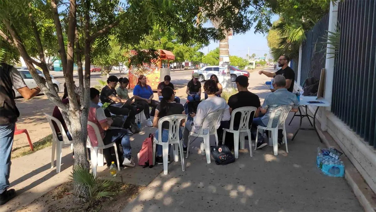 Por segundo día consecutivo, un grupo de estudiantes de la Universidad Autónoma de Sinaloa (UAS) en Los Mochis desafió las condiciones del paro laboral y recibió clases en las afueras de Ciudad Universitaria.