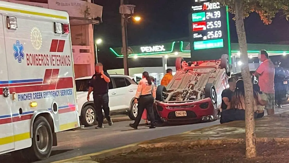 Un fuerte accidente tipo volcadura se suscitó esta noche de miércoles en la carretera internacional, frente a conocida plaza del sector Jacarandas de Mazatlán.
