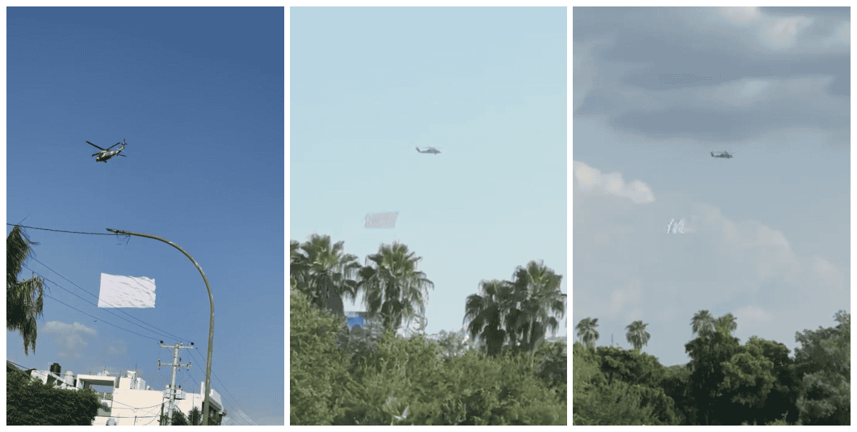 Un helicóptero de la Marina sobrevoló diferentes zonas de Culiacán ondeando una bandera de color blanco, acción que llamó la atención de cientos de ciudadanos que lo interpretaron como una señal de paz ante los enfrentamientos que comenzaron el pasado 9 de septiembre.