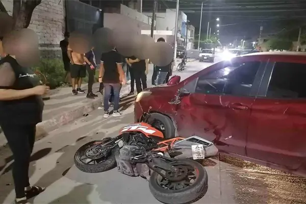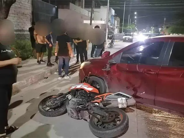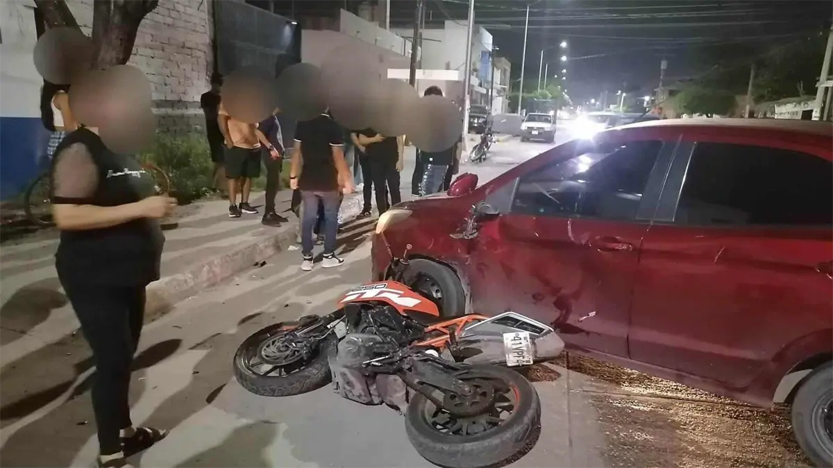 Según los reportes en el lugar, un Ford Figo rojo circulaba por las calles mencionadas cuando fue impactado en su costado izquierdo por una motocicleta KTM en la que viajaban dos jóvenes; tras el choque, ambos motociclistas cayeron al pavimento.