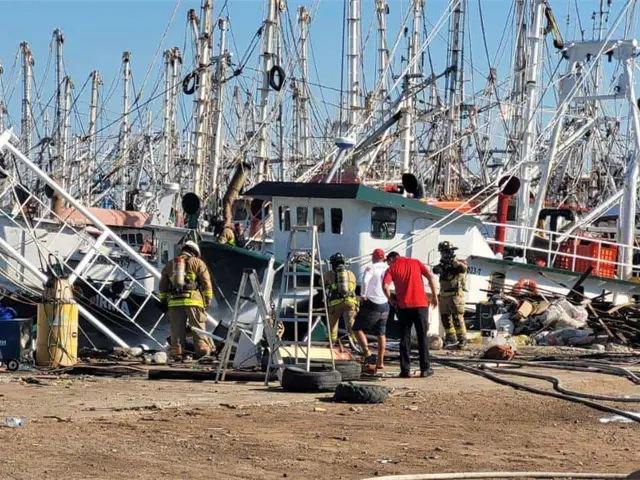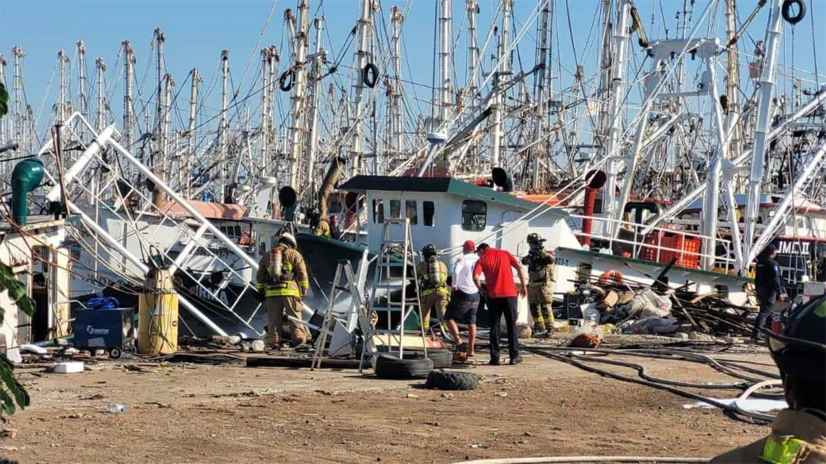 Incendio en barco camaronero deja a dos trabajadores lesionados con quemaduras