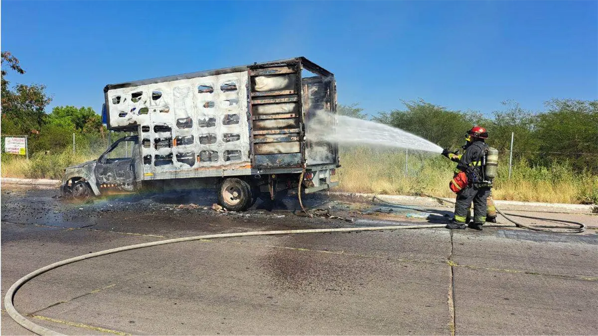 Camioneta termina calcinada por una falla mecánica al norte de Culiacán
