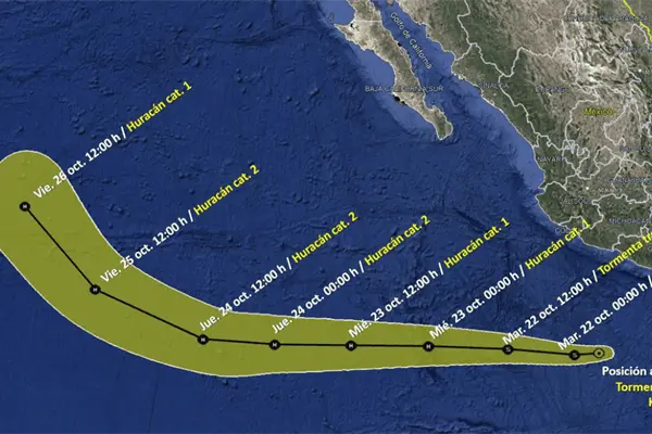 Su amplia circulación ocasionará lluvias puntuales muy fuertes (50 a 75 mm) en Jalisco, Colima, Michoacán y Guerrero, así como lluvias e intervalos de chubascos (5 a 25 mm) en Nayarit. Asimismo, reforzará la probabilidad de chubascos y lluvias puntuales fuertes en entidades del centro del país, incluido el Valle de México.