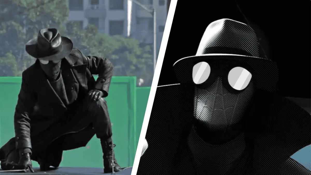 Todo el conjunto de un color oscuro, que le permitiría camuflarse en las sombras y mezclarse perfectamente con la estética de la época, ya que Spider-Man Noir estará ambientada en la década de 1930.