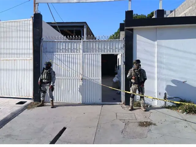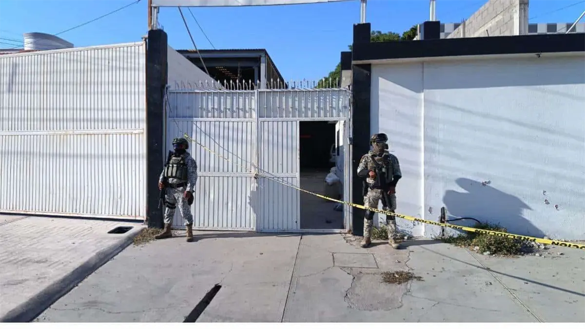 Elementos del Ejército mantienen bajo resguardo una bodega donde se presume hay sustancias ilícitas en el interior en la colonia Rafael Buelna al sur de Culiacán.