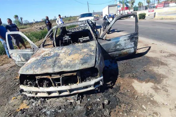 Un vehículo terminó reducido a chatarra tras incendiarse al filo del mediodía de este jueves, mientras intentaba incorporarse a la carretera internacional México 15, muy cerca de la zona conocida como La Pilarica, al sur de la ciudad de Los Mochis.