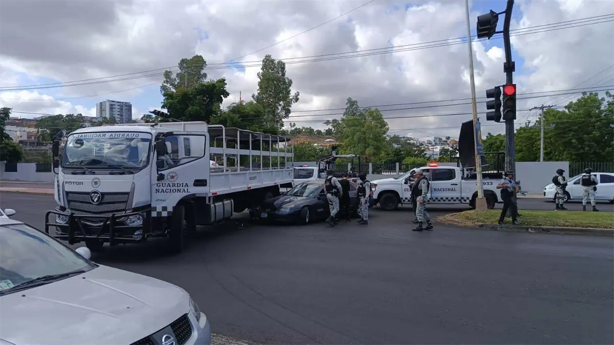 Conductor choca contra un camión de la Guardia Nacional en Colinas de San Miguel al sur de Culiacán