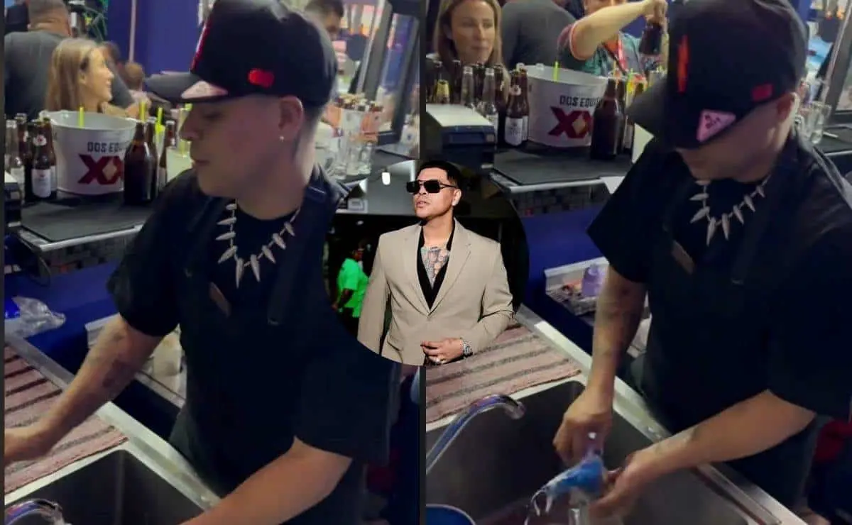 Sin embargo, la gran sorpresa fue que, a fin de promocionar su nuevo negocio, el vocalista de Grupo Firme fue captado en un video lavando los trastes, pero, eso sí, echándose una cerveza entre vaso y vaso que lavaba.