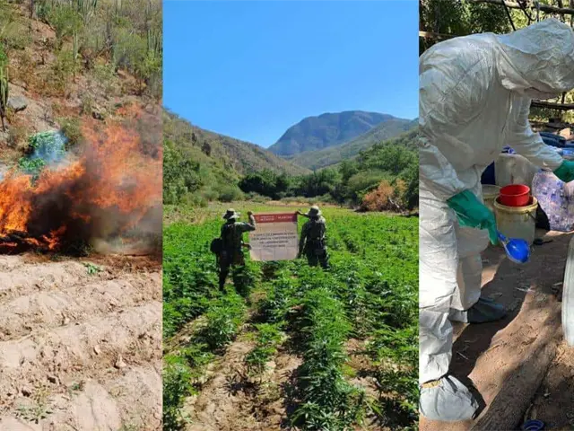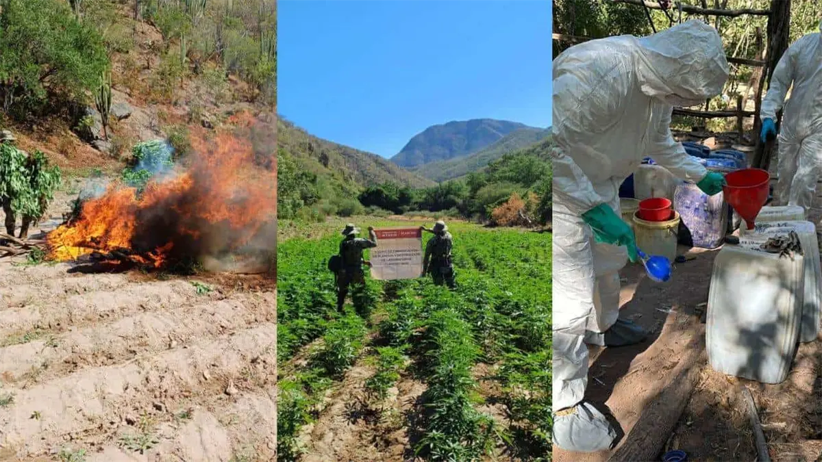 Elementos de la Secretaría de Marina Armada de México en coordinación con Fiscalía General de la República FGR, ubicó, aseguró y destruyó de un laboratorio clandestino y un plantío de mariguana, en Sinaloa y el estado de Durango.