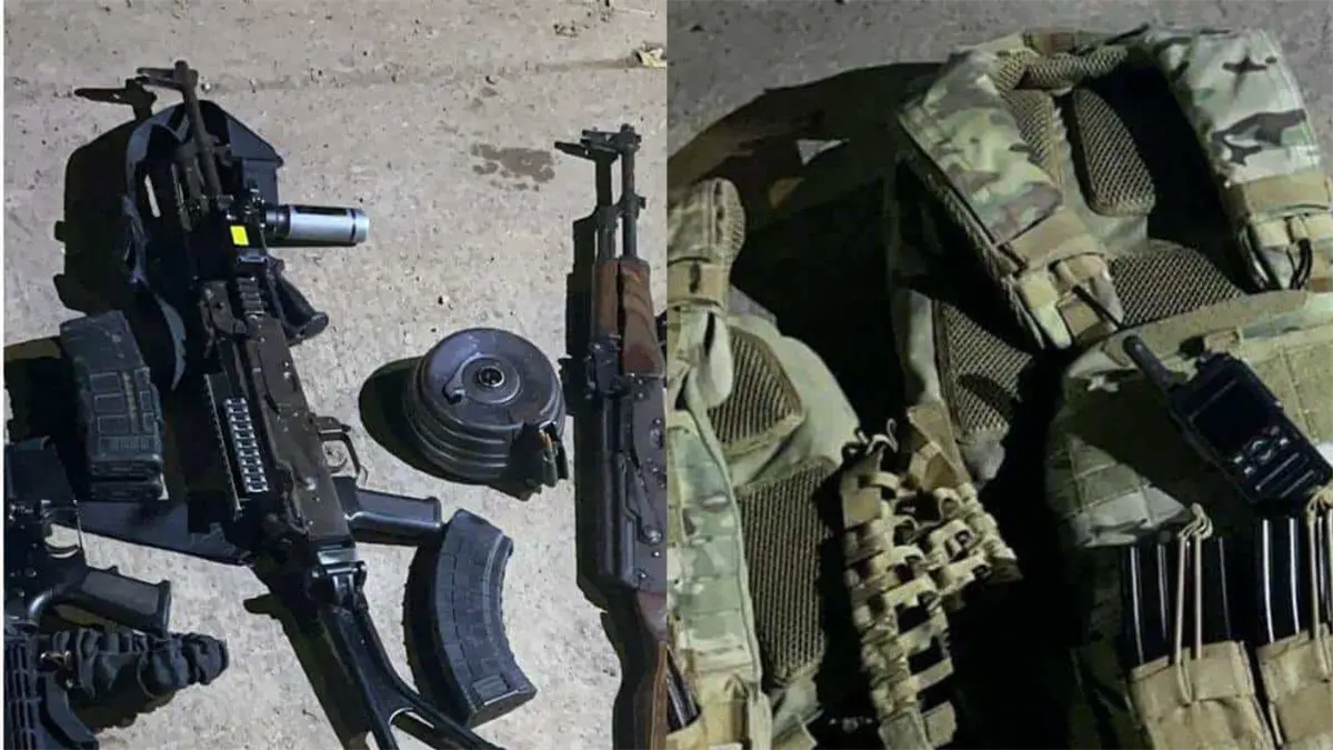 También aseguraron chalecos antibalas, equipo de radiocomunicación, múltiples cargadores de diferentes calibres y equipo táctico diverso.