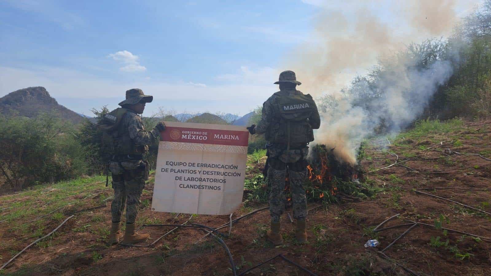 Marina destruye plantío de más de 22 mil plantas de marihuana, en Culiacán