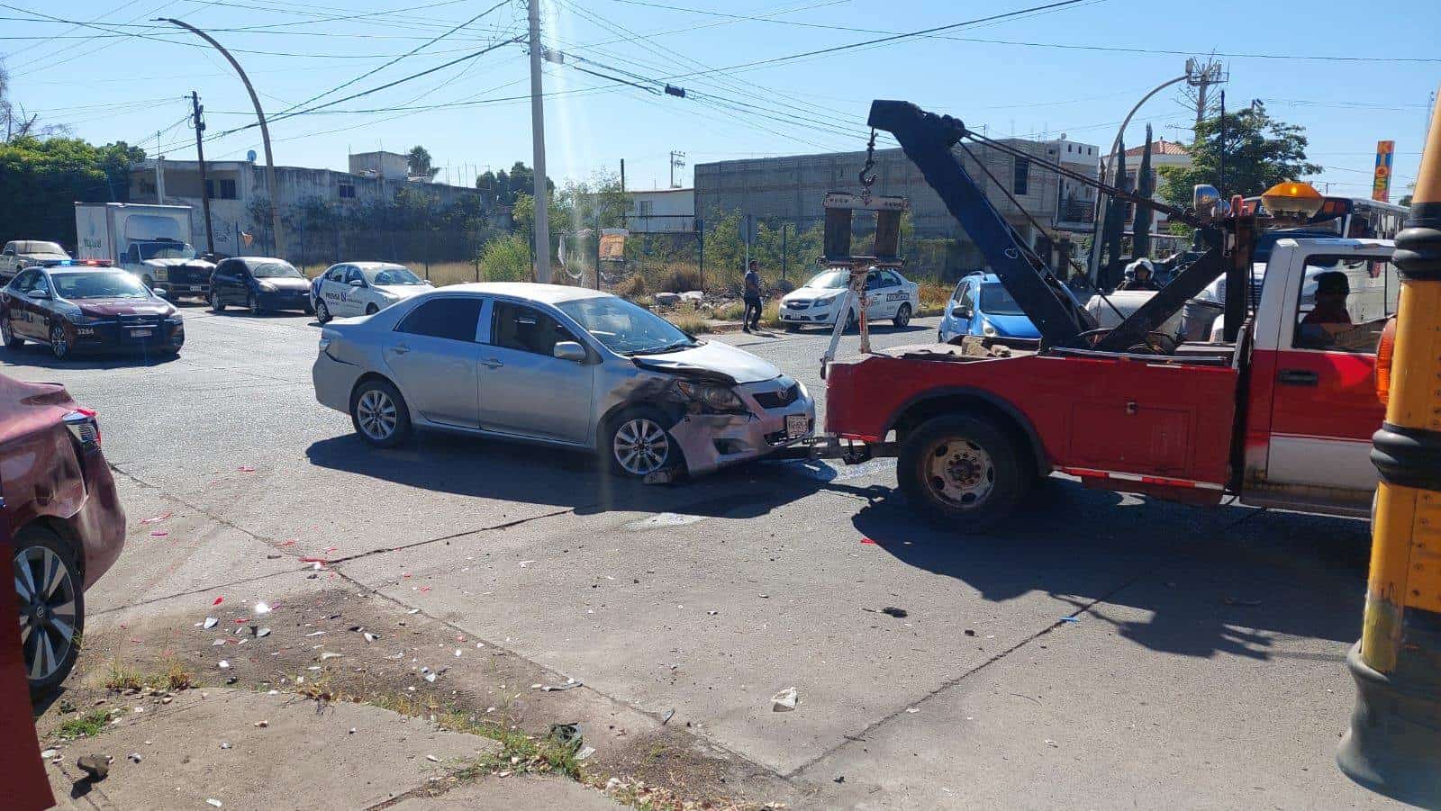 El accidente se registró la tarde de este 20 de noviembre en el cruce de la calle Emiliano Zapata y Lázaro Cárdenas, del sector centro; entre un vehículo de la marca Toyota, línea Corolla, de color gris, y un automóvil de la marca Nissan, línea Sentra, de color tinto, modelo reciente, ambos con placas de Sinaloa.