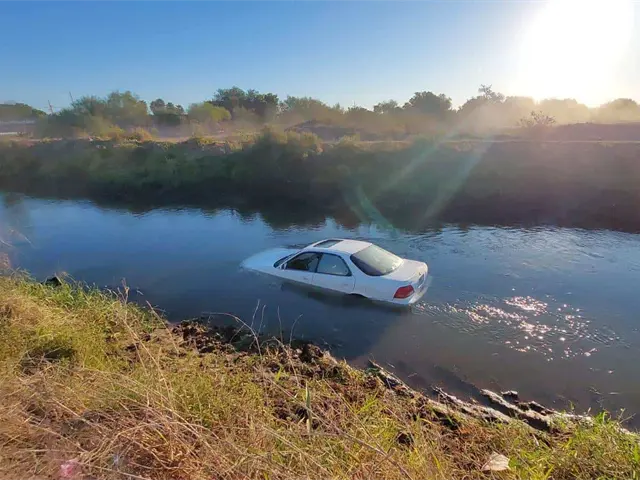 Un vehículo completamente abandonado fue localizado esta mañana dentro de un canal de riego, muy cerca de la carretera Internacional México 15, en el libramiento poniente; el hallazgo movilizó a los cuerpos auxilio y de rescate, pero no encontraron al conductor, se presume que salió y lo dejó abandonado.