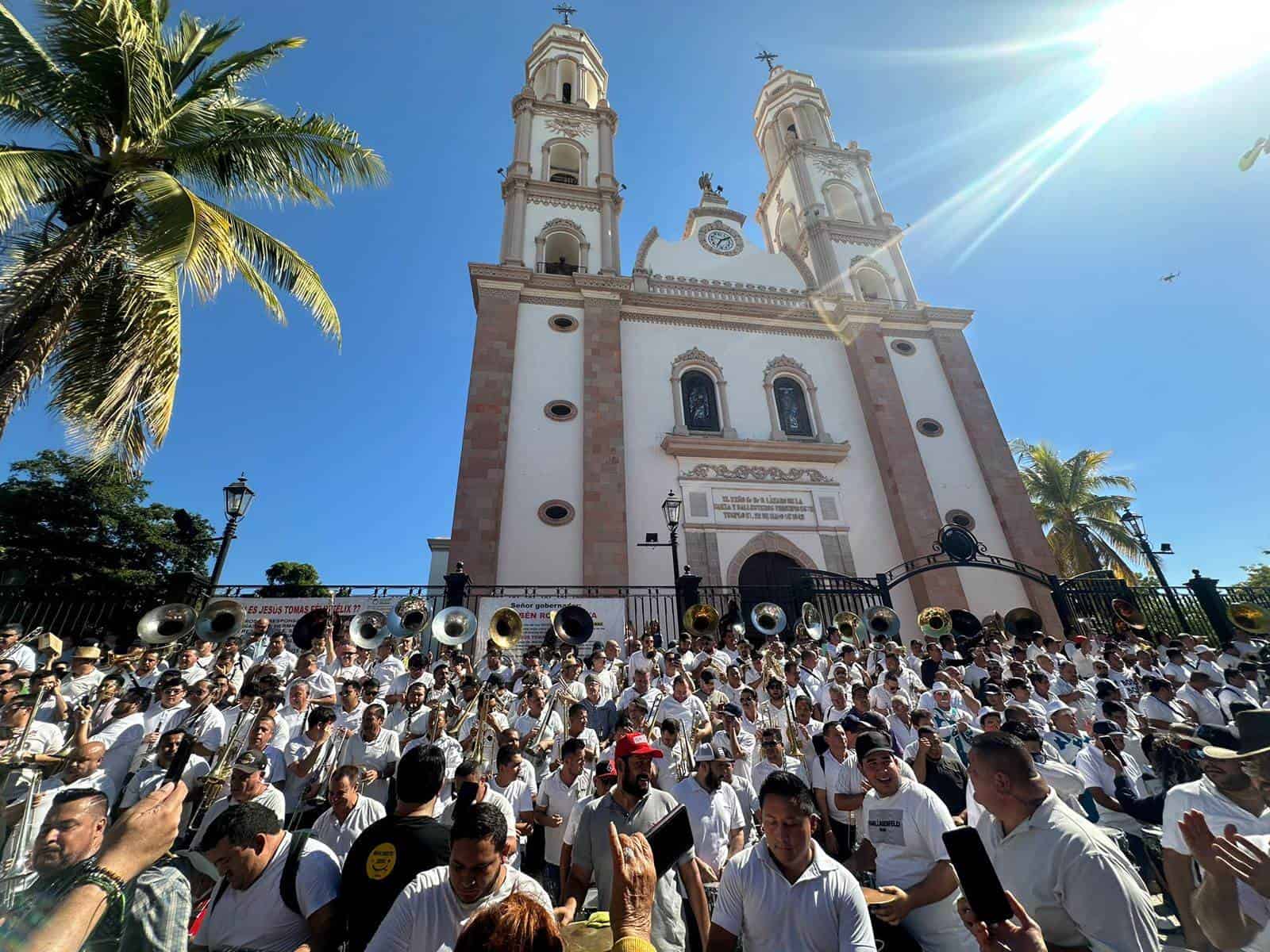 Sobre las escaleras de la iglesia de Catedral en el centro de la ciudad, más de 200 músicos entonaron la canción que se ha convertido en un himno para los culiacanenses y al mismo tiempo cientos de ciudadanos comenzaron a bailar al ritmo de la banda.