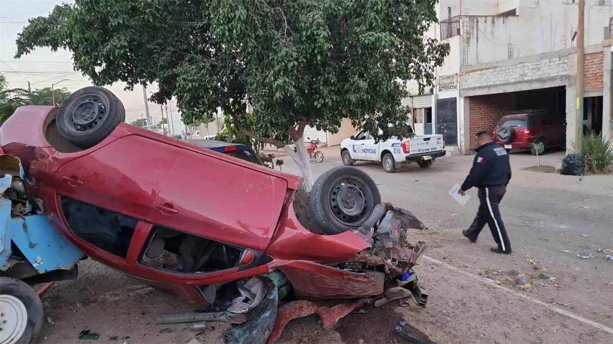Tras el accidente el vehículo destrozó un árbol y golpeó un vehículoNissan March y un camión, los cuales estaban estacionados.