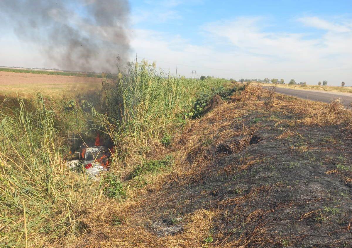 Vehículo termina calcinado tras chocar en Ruiz Cortines, Guasave