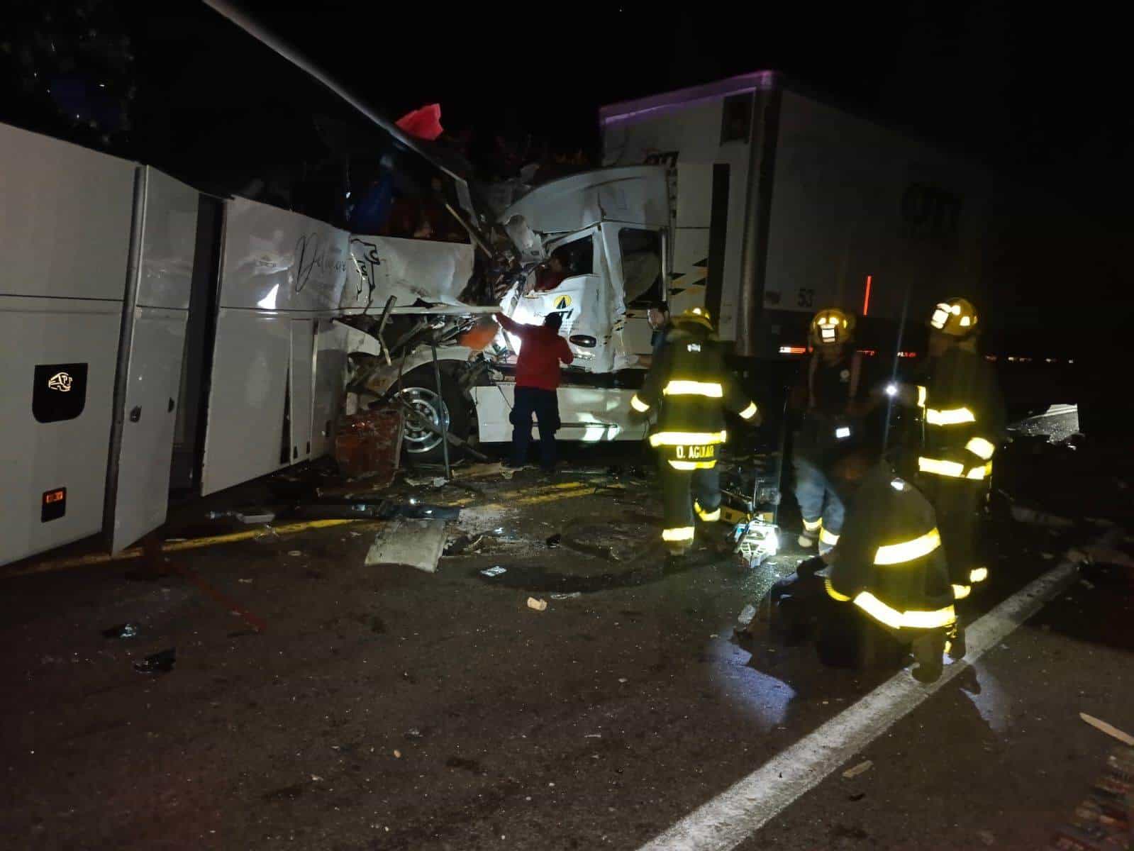 Un fuerte encontronazo entre un autobús y un tráiler dejó a varias personas lesionadas en el kilómetro 169 de la carretera de cuota Mazatlán-Tepic, entre las comunidades de Tecualillas y La Concha, en el municipio de Escuinapa.