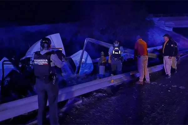 El conductor del tráiler perdió el control de la unidad y se desvió hacia el acotamiento del lado derecho junto con una de las patrullas pick-up donde murieron los dos elementos de la Guardia Nacional.