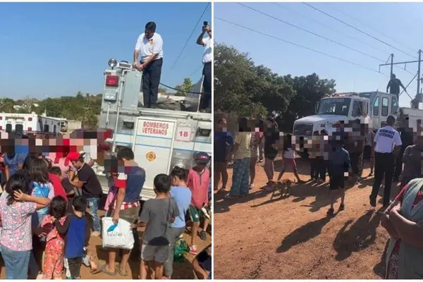 Llevan Bomberos Veteranos una alegre posada a niños y niñas de invasión en Mazatlán