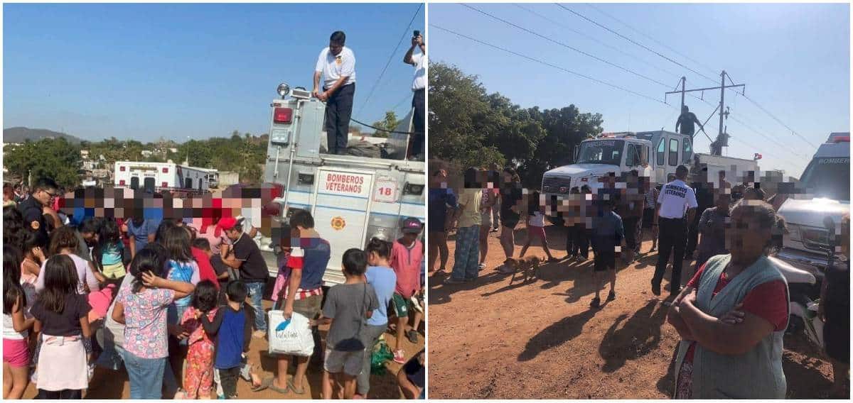 En medio de las emergencias que atienden día a día, este viernes, elementos de Bomberos Veteranos se hicieron un “campito” entre sus ocupaciones para llevar un momento de alegría a niños y niñas de la invasión San Antonio, ubicada al norte de Mazatlán.