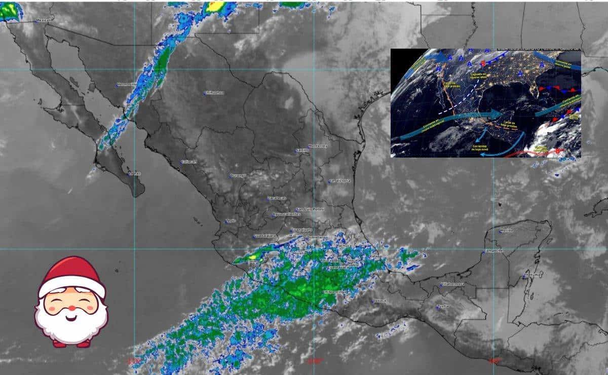 Durante la Nochebuena (martes 24) y Navidad (miércoles 25), la vaguada persistirá, trayendo temperaturas muy frías a las mismas regiones. Las lluvias y chubascos afectarán a estados del centro y oriente de México.