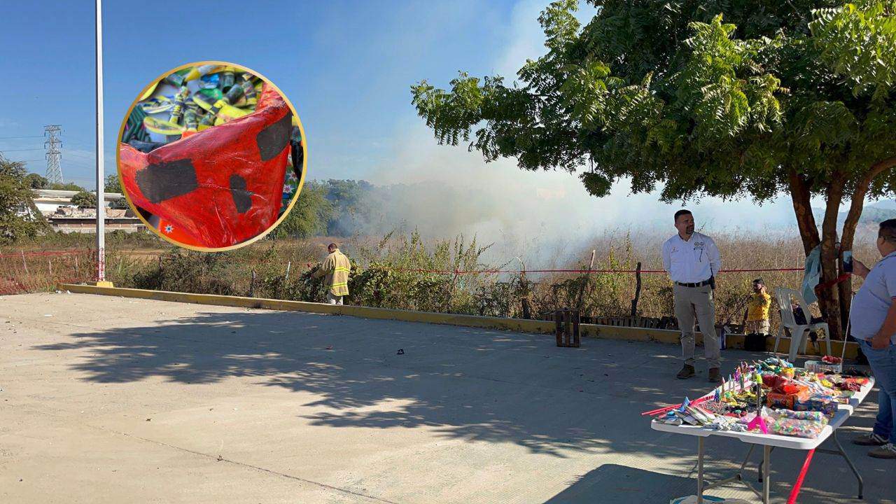 Ante la situación emergente que da un ejemplo de lo que puede ocurrir ante un mal manejo de los cohetes atendieron elementos de Bomberos Mazatlan, quienes llegaron a apoyar para sofocar el incendio, que ya se había extendido por gran parte del lote.