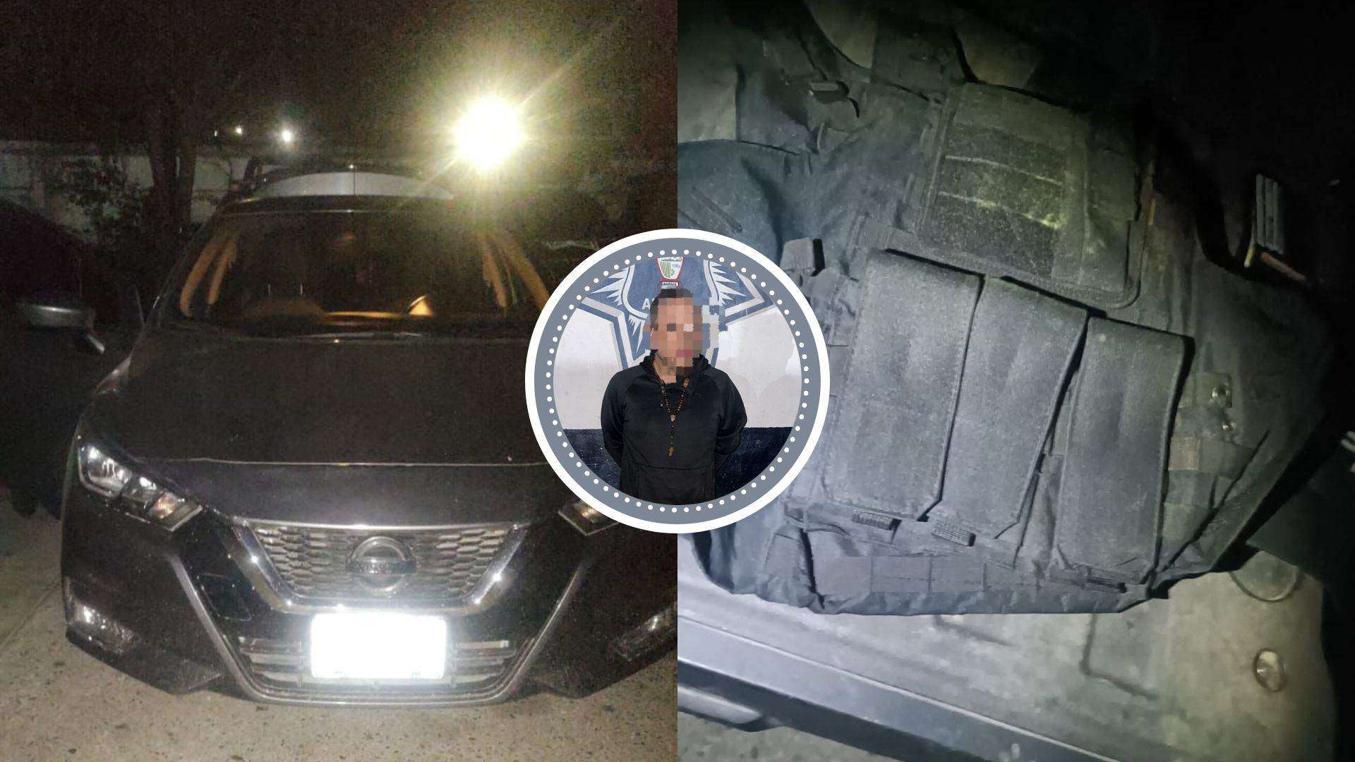 Aunque no se le encontró nada en su persona, la revisión del vehículo reveló una caja con 30 cartuchos útiles en el portavasos. En la cajuela, los agentes hallaron un estuche con una pistola calibre .40 marca Smith & Wesson, con un cargador abastecido con nueve cartuchos útiles. Además, se encontró un chaleco táctico en el mismo compartimento.