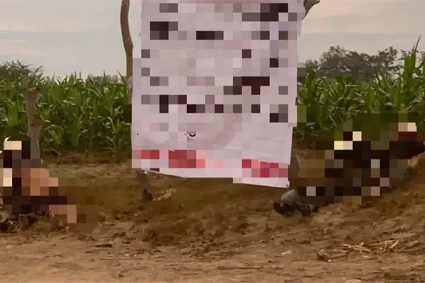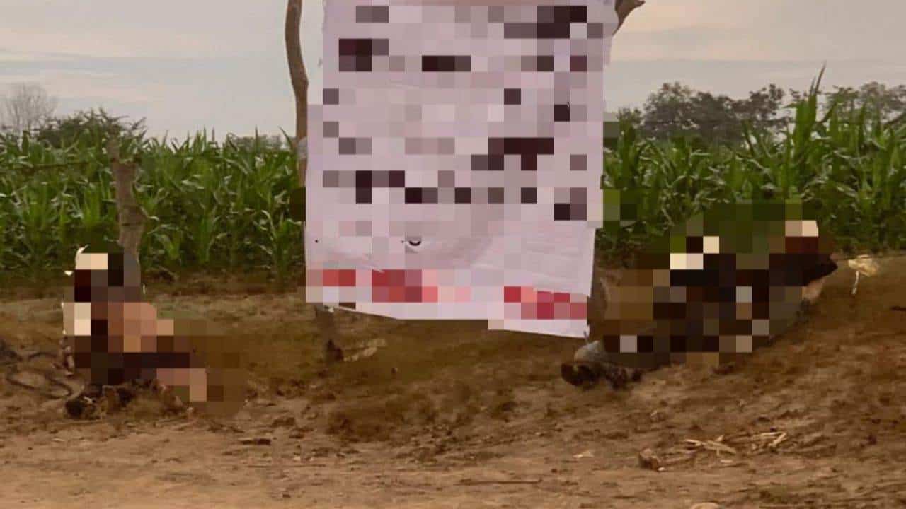 Fue en un predio cercano a los márgenes del río donde fueron encontrados tirados los cuerpos de los cuatro hombres, acompañados de una manta con un mensaje intimidatorio.