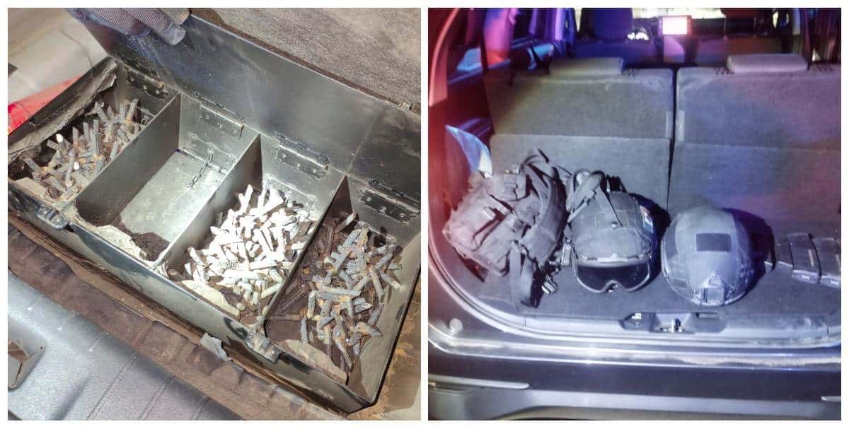 En el interior de las unidades fueron localizadas las puntas de acero, cascos tácticos, pecheras portacargadores y cargadores de diferentes calibres.