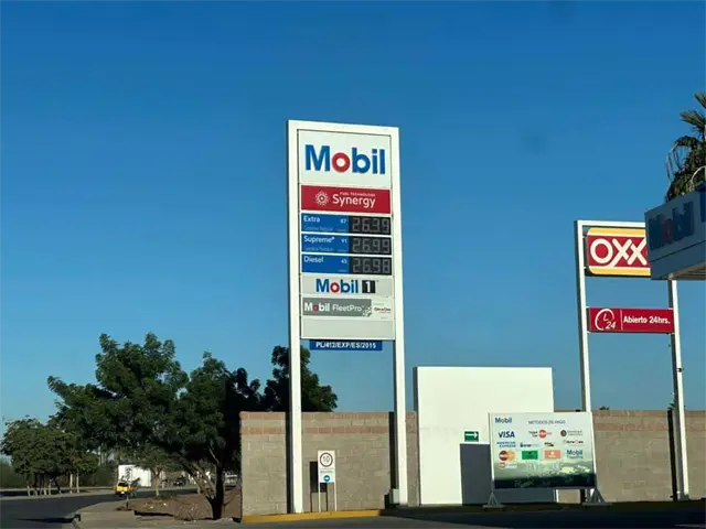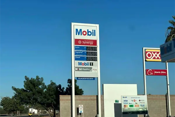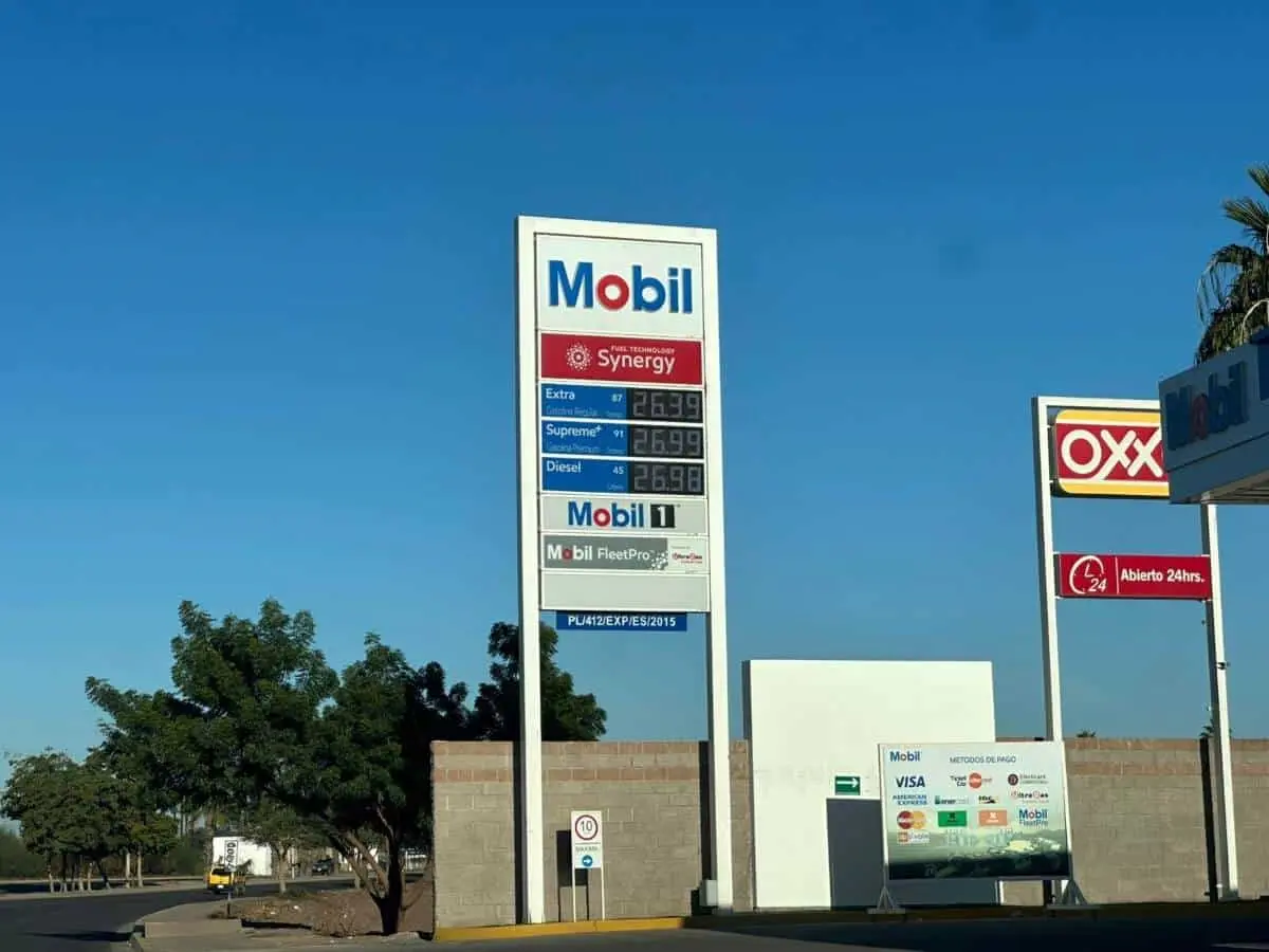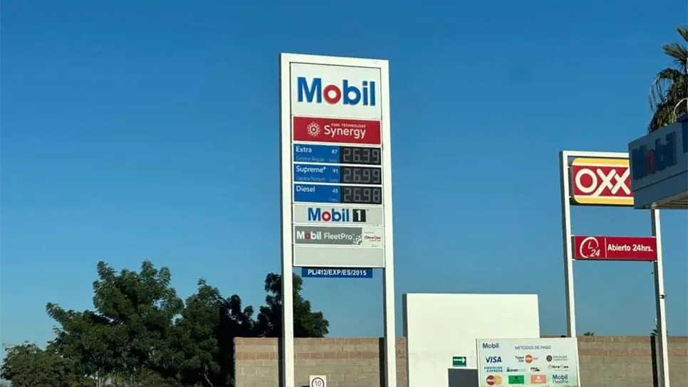 Mientras que las estaciones de Mobil manejan un precio de $26.39 pesos por litro de la Extra (87 octanos), $26.99 en la Supreme+ (91 octanos) y $26.98 pesos por litro en el diésel (45 Cetanos).