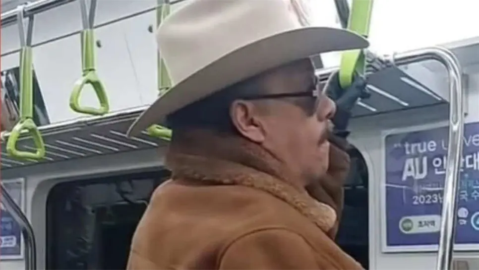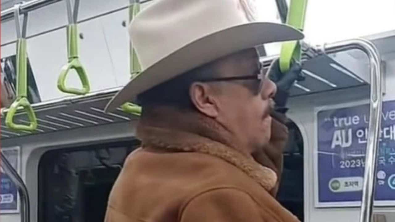 Hombre mexicano viaja en el metro de Corea del Sur utilizando botas y sombrero | VIDEO