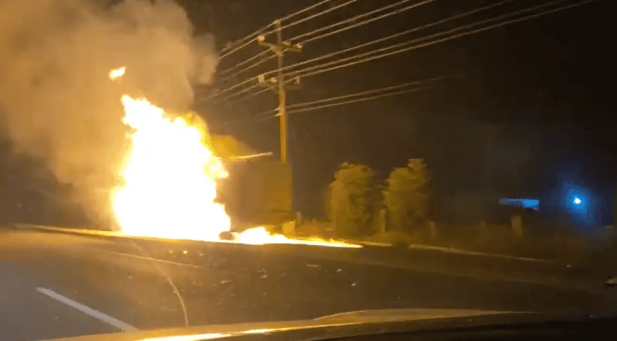 Autoridades recibieron el reporte sobre un camión que se estaba incendiando a la orilla de la carretera y cuando acudieron al lugar percibieron fuertes olores a sustancias químicas.