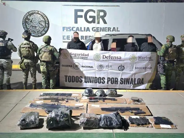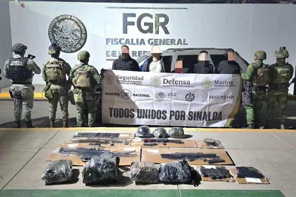Elementos de los tres niveles de gobierno detuvieron a cinco civiles a quiénes les aseguraron armamento de alto poder, equipo táctico y un vehículo blindado en la sindicatura de La Cruz, municipio de Elota.
