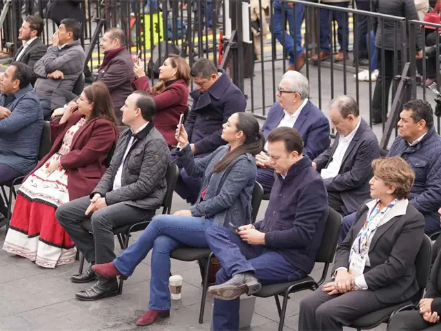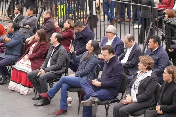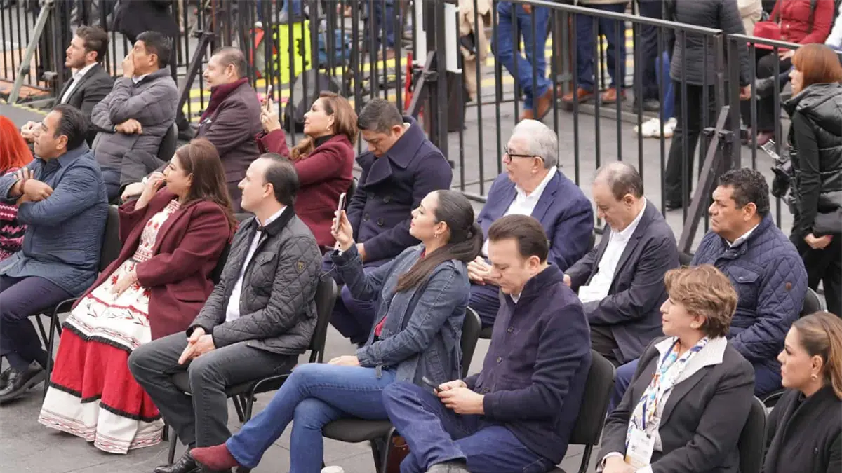 El evento se llevó a cabo en el Zócalo de la Ciudad de México, donde el mandatario estatal estuvo rodeado de otros gobernadores y funcionarios.